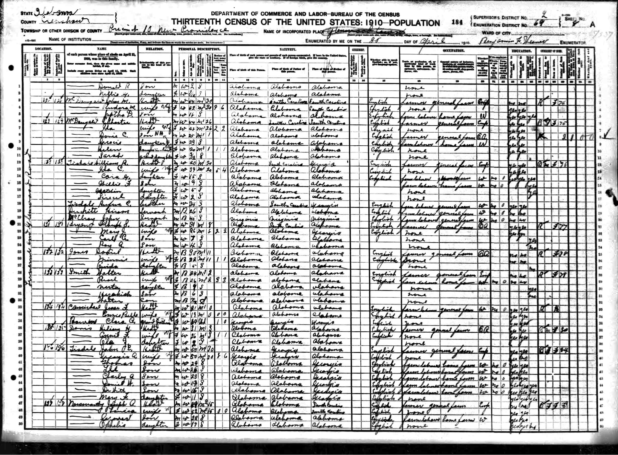 Source Citation: Year: 1910; Census Place: New Providence, Crenshaw, Alabama; Roll: T624_9; Page: 8A; Enumeration District: 69; Image: 1072.